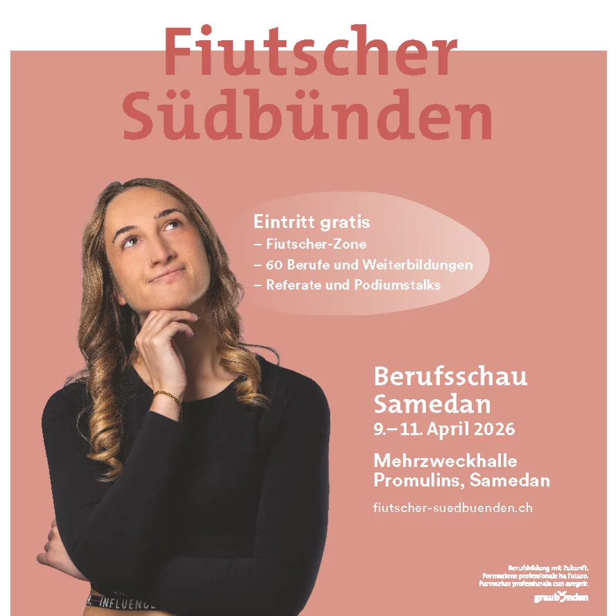 Die Berufsschau Fiutscher Südbünden in Samedan bringt Jugendliche, Lehrbetriebe, Schulen und Eltern zusammen. Vom 9. bis 11. April 2026 verwandelt sich die Mehrzweckhalle Promulins in einen lebendigen Treffpunkt, wo junge, interessierte Menschen ihre berufliche Zukunft entdecken und Unternehmen ihre Lehrberufe präsentieren können.